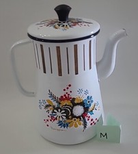 Vintage Berggren Flowers Enamel Metal Coffee Pot Teapot White Mid Century ⬇️ M