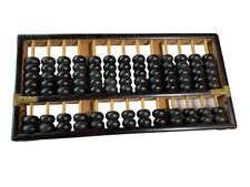 Vintage Wooden Abacus Black Beads Brass Hardware Mid Century MCM Decor 11.5in