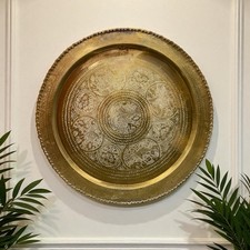 Mid Century Brass Chinese Phoenix Round Tray Engraved Wall Art Good Fortune 30in