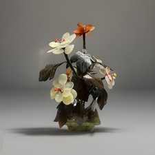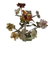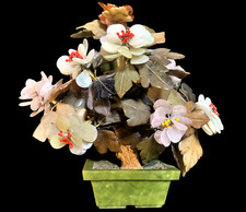 Vintage Carved Stone Gemstone Flower Tree Bonsai Sculpture Mid-Century Asian