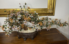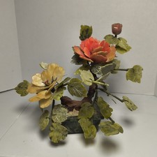 Vintage Mid Century Carved Jade Peony Flowers High Blossom Bonsai Tree 10” READ
