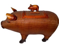 Pig Mid Century Chinese Hand Crafted Wood Wicker Pig Sculpture Box Vintage