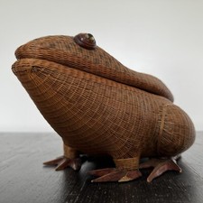 Whimsical Mid Century SHANGHAI HANDICRAFTS WICKER & WOOD Spotted Frog Toad BOX