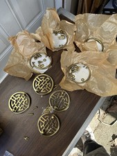 Vtg NOS Mid-Century 3.5” Solid Brass Chinoiserie Drawer Pull Door Knocker 12 Set