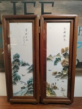 Vintage Chinese Rice & Shell Art Shadowbox Panels – Mid Century 3D Landscape...