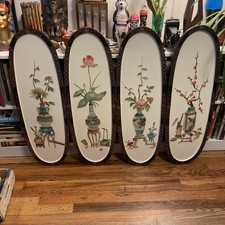 Set - 4 VTG Chinese Lacquerware & Soapstone Floral Wall Panels 36X12 MID CENTURY