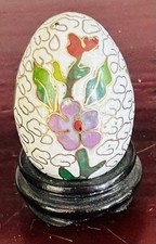 Mid Century Chinese Cloisonné Decorative Egg On Fitted Stand