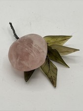 Vintage Mid Century Chinese Carved Rose Quartz Plum With Jade Etched Leaves