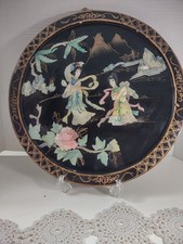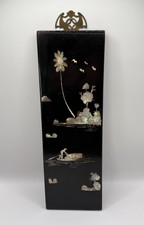 Vintage Mid-Century Chinoiserie Black Lacquer/Mother of Pearl Wall Plaque