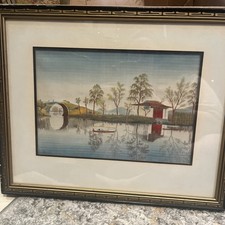 Mid Century Vintage Chinese Silk Embroidery Landscape Art Framed Water Scene