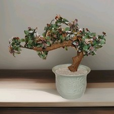 Vintage Mid-Century Chinese FULL Jade Glass Agate Large Bonsai Flower Tree