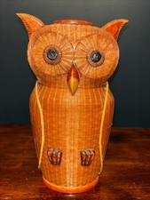 TWO SIDED Mid Century Zhejiang Handicrafts OWL- Bamboo, Wicker & Wood
