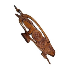 Vintage Mid-Century Modern Korean Hand-Carved Wood Plaque Wall Art Korea Baldwin