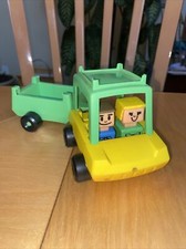 Vintage 1960s Playskool Green/Yellow Toy Car #385 Wagon #386 + 2 People