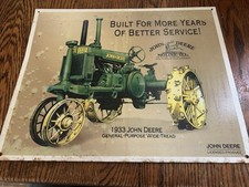 John Deere 1933 Wide-Tread Tractor Service Metal Tin Advertising Sign 16" × 12"