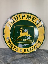 VTG JOHN DEERE EQUIPMENT PARTS SERVICE 23" ROUND METAL ADVERTISING SIGN HOMEMADE