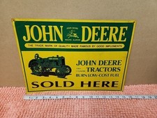 VTG John Deere Metal Advertising Sign "John Deere Tractors Sold Here" 15" x 11"