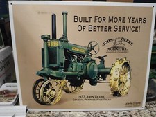 John Deere 1933 Wide-Tread Tractor Service Metal Tin Advertising Sign 16" × 12"