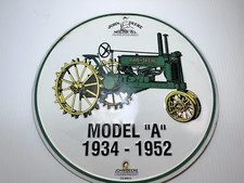 JOHN DEERE TRACTOR MODEL A 1934-1952 WHITE TIN ADVERTISING SIGN 12" ROUND