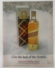 Johnnie Walker Red Scotch Vintage Print Magazine Advertising Page Bottle Snow