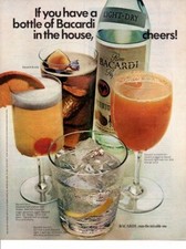 Vintage advertising print Alcohol ad Bacardi Rum Bottle in the House Cheers 1971