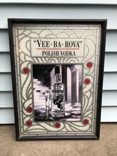 Vintage Vee Ba Rova Polish Vodka Sign mirror Wood Frame Advertising