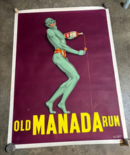 1930s 66" x 49" OLD MANADA RUM Advertising poster FRANCE Paper on Canvas