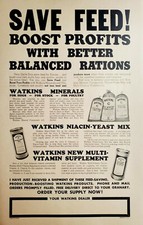 Vintage 1940s Watkins Farm Livestock Poultry Minerals Advertising Poster Sign