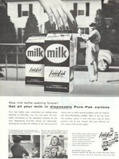 Vintage advertising print Dairy Pure-Pak Milk Carton disposable stop bottle ad
