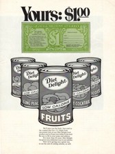 Vintage advertising print FOOD Diet Delight low calorie Fruits can Clip Mail ad