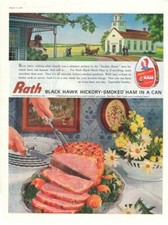 Vintage advertising print FOOD RATH Black Hawk Hicory Smoked Ham in a Can 1961