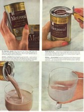 Vintage advertising print FOOD Metrecal Chocolate liquid dietary drink can 1961