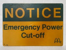 Vintage McDonalds Notice Emergency Power Cut Off Sign Advertising Unique 962A