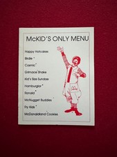 VINTAGE 1988 McDONALD'S 'McKID'S ONLY MENU' BOOKLET WITH McDONALDLAND CHARACTERS