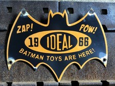 VINTAGE 11x8 in IDEAL BATMAN TOYS ARE HERE ADV SIGN HEAVY METAL PORCELAIN - Z541