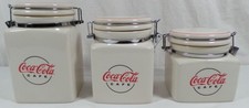 Set of 3 2003 GIBSON CERAMIC Coca Cola CANISTER Cookie JAR with SNAP locks