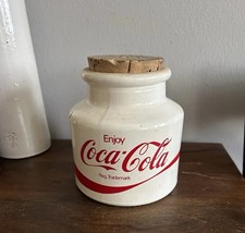 Vintage Coca Cola Glass Canister White - Enjoy Coca- Cola, With Cork - Read!