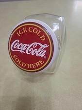 Coca Cola Collectible Large Glass Cookie/Candy Canister w/ Ceramic Lid 8” tall
