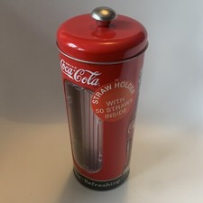 COCA-COLA Tin STRAW DISPENSER W/ 20 STRAWS NEW & Unused