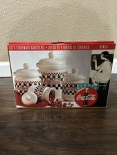 Coca Cola Vintage Stoneware Kitchen 4-Piece Canister Set 1997 In Box
