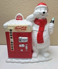 Coca Cola Polar Bear Cookie Jar with Vending Machine Christmas Decor 11" x 9"