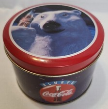 Coke Coca-Cola 3" Tall 5" Round Tin Canister Polar Bear Very Nice