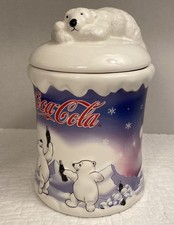 Coca Cola Can Polar Bear Ceramic Cookie Jar Christmas Canister Ice Cold 2004 VTG