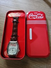 NEW COCA-COLA WRIST WATCH with LEATHER BAND IN TIN