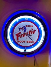 Frostie Root Beer Soda Fountain Bar Man Cave Store Neon Style LED Clock Sign