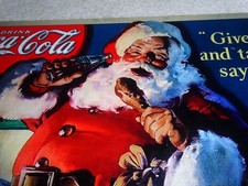 VINTAGE DRINK COCA COLA W/ SANTA CLAUS & BOTTLE 12" METAL SODA GASOLINE OIL SIGN