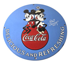 Vintage Coca Cola Sign - Refreshing Soda Mickey Mouse Gas Porcelain Disney Sign