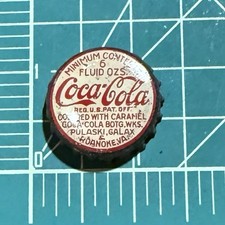 Coca-Cola Cork Lined Crown Bottle Cap • Pulaski Galax Roanoke VA • c1940s • 6oz