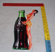 VINTAGE 11 3/4 in SEXY LADY & BOTTLE COCA-COLA SIGN HEAVY METAL PORCELAIN # 943