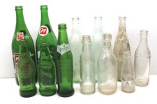 12 Vintage Soda Bottles Green Glass Sprite+Coca Cola+Pee Wee+Pepsi+7Up+Spring Co